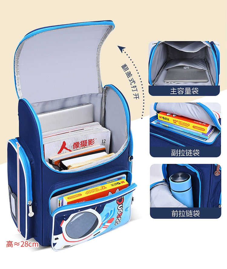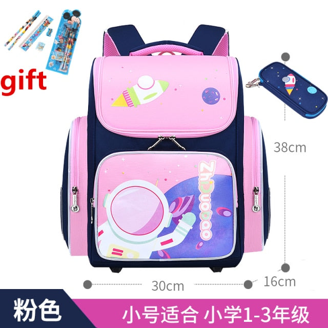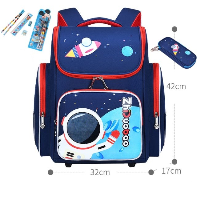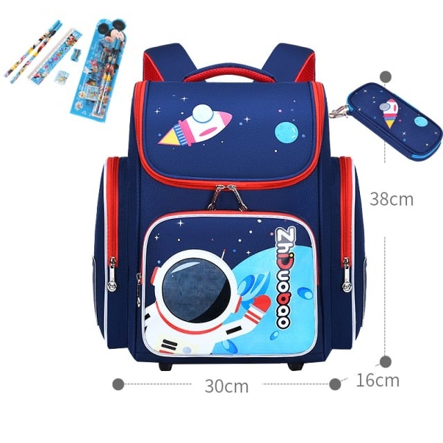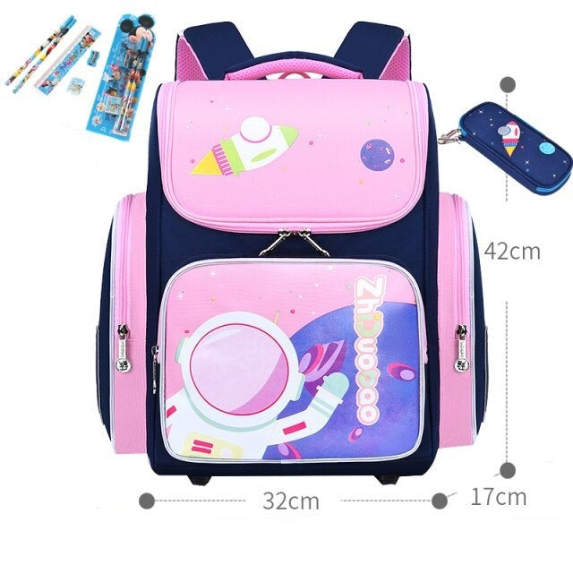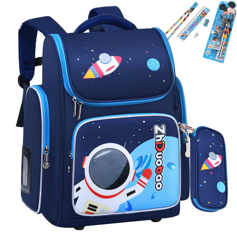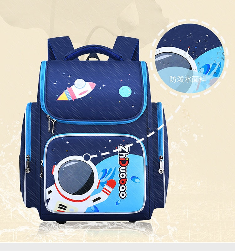 Vesmírný batoh pro chlapce i dívky. Je velmi lehký, jelikož sám batoh váží pouze 500 gramů. Je vhodný pro každodenní nošení do školy a pro přenos školních pomůcek. Batoh je nabízen dodavatelem ve dvou velikostech. Batoh je vodotěsný a bytelný.