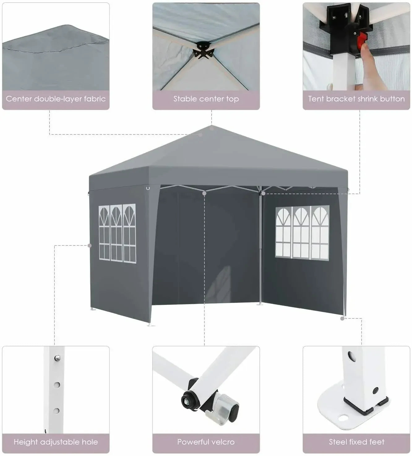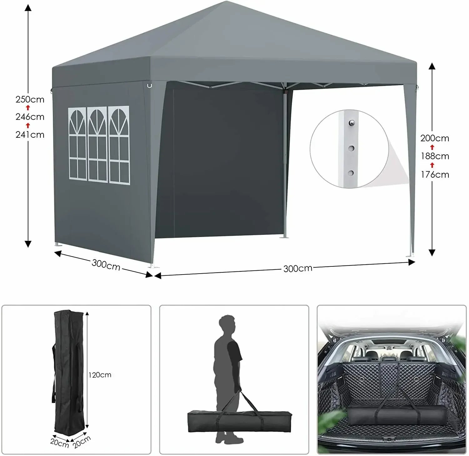 Zahradní altán na zahradu Snadná instalace: nejsou potřeba žádné další nástroje. Sestavený rám vyjměte a rozložte, na rám položte plátno, natáhněte podpěru stanu, nastavte výšku a plachtu zafixujte suchým zipem. Tři nastavení výšky 176, 188, 200 cm vám umožní vybrat si tu nejlepší výšku.