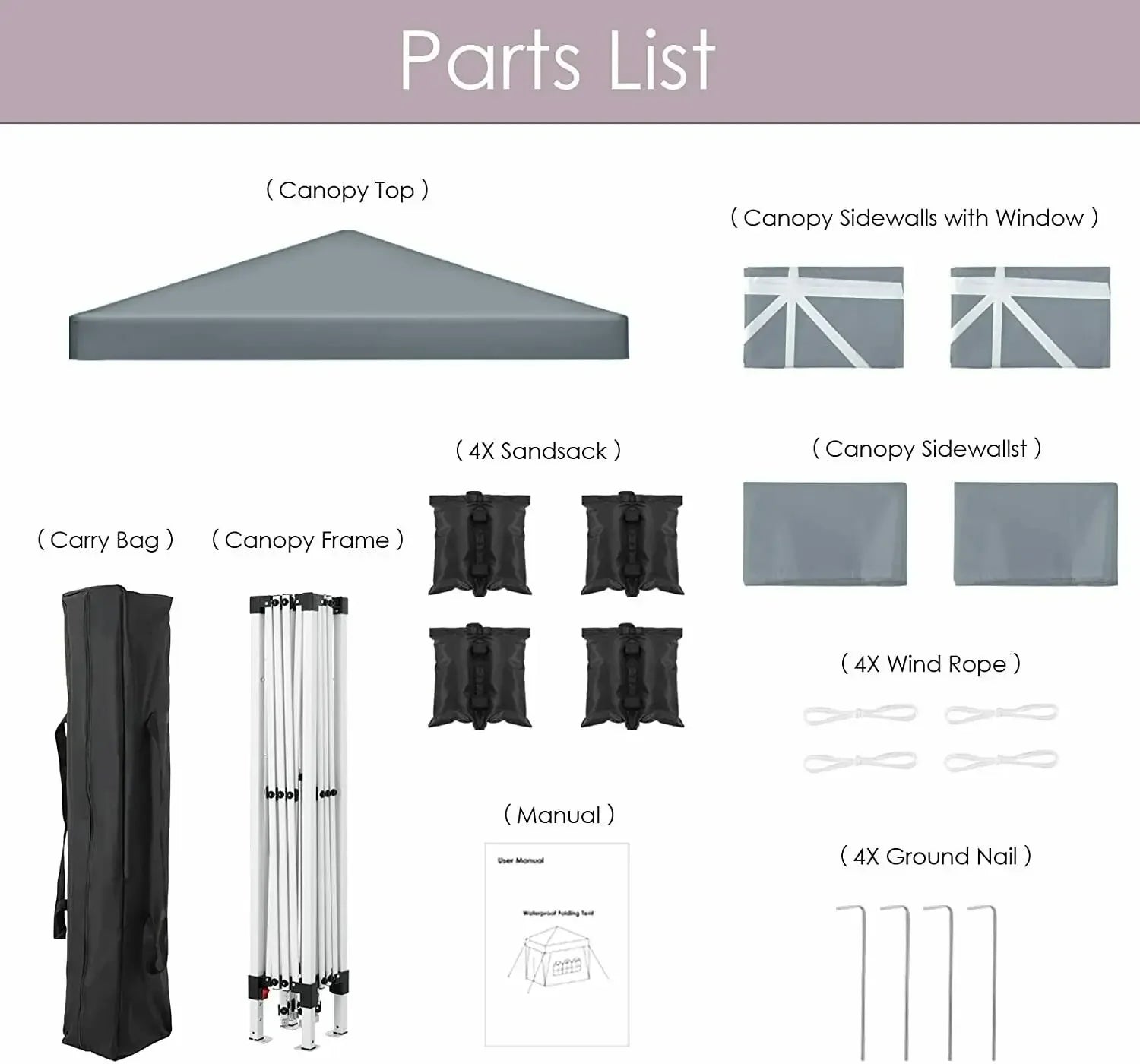 Vysoká kvalita: Vybaveno vysoce kvalitním ocelovým rámem a bílým povlakem, aby se zabránilo korozi a stárnutí. Vhodné pro použití v různých ročních obdobích. Čtyři dodávané pytle s pískem jsou připevněny ke čtyřem nohám stanu, takže váš stan je vždy bezpečný a spolehlivý. Pro zajištění stability stanu použijte prosím současně připevněné zemní hřebíky a větrná lana.