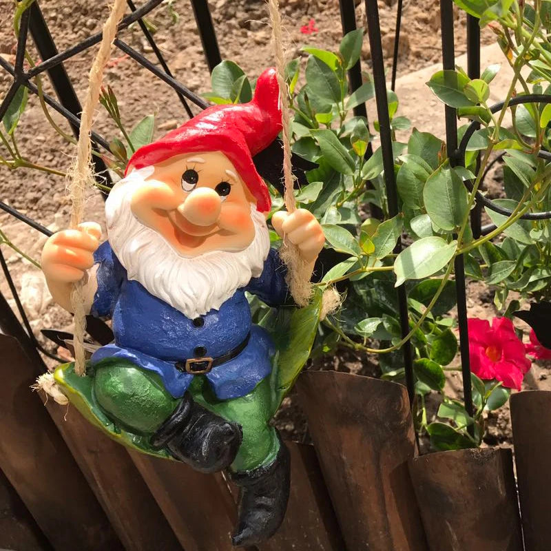 Zahradní roztomilý trpaslík na houpačce. Více druhů na výběr.
