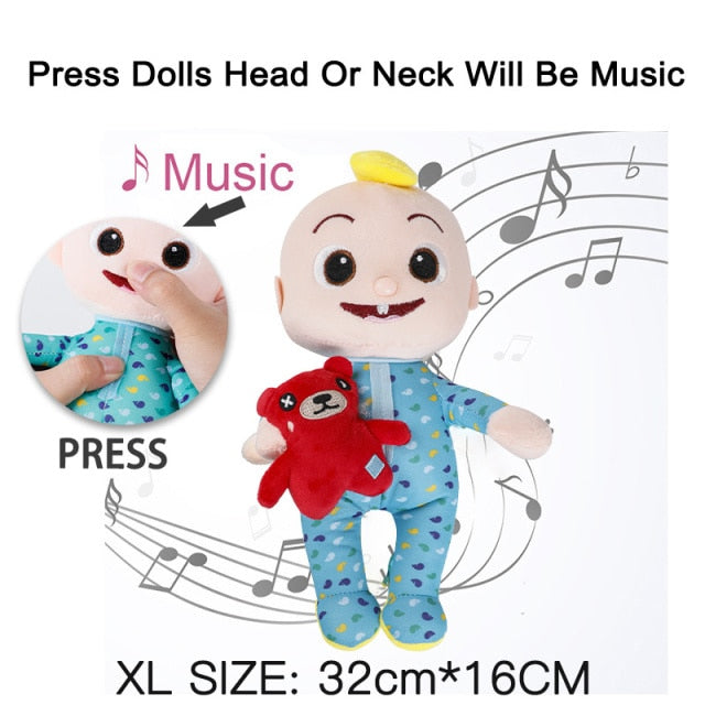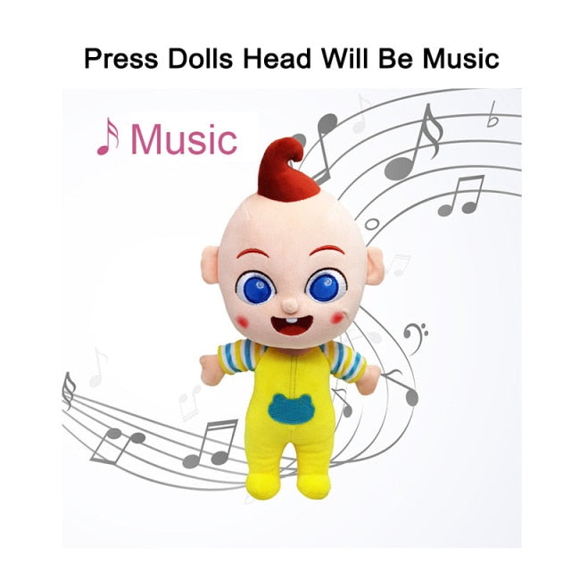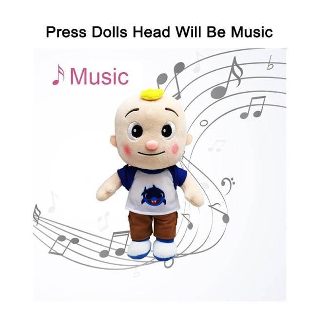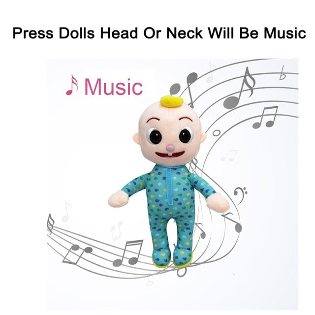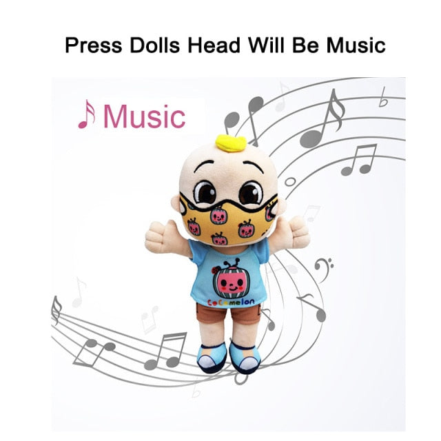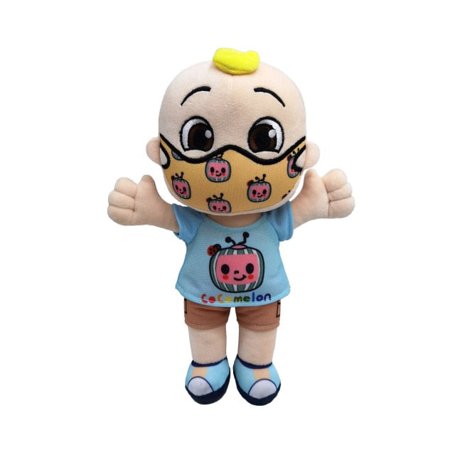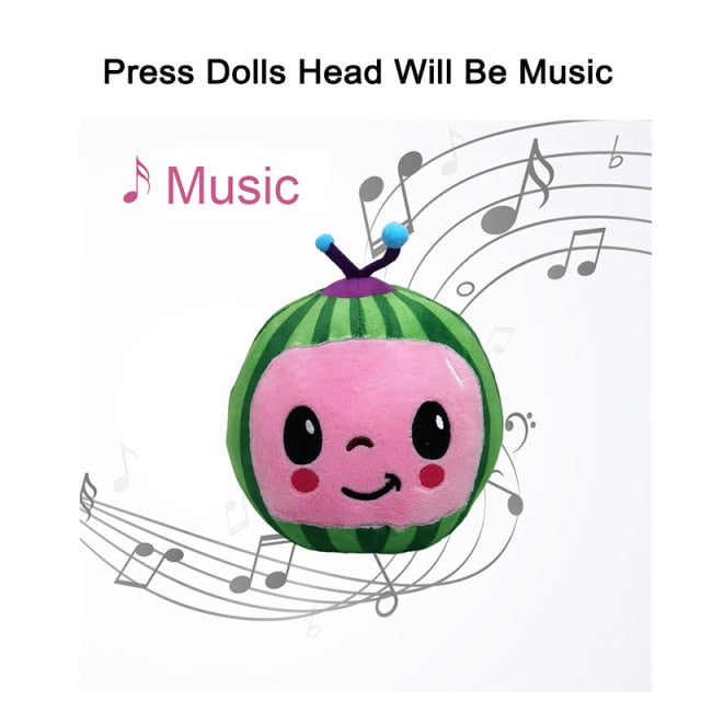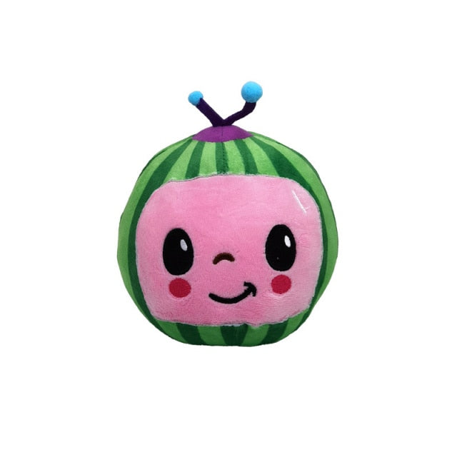 Dětská zpívající plyšová hračka v designu postavičky Cocomelona v různých tvarech a barevných kombinacích.