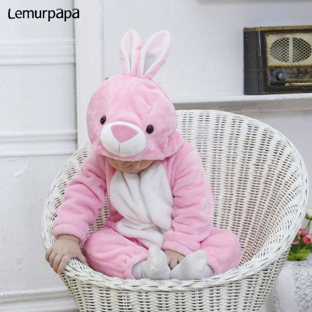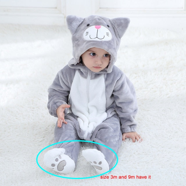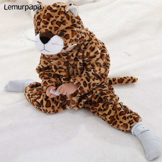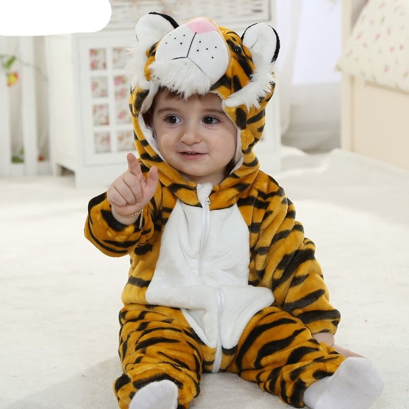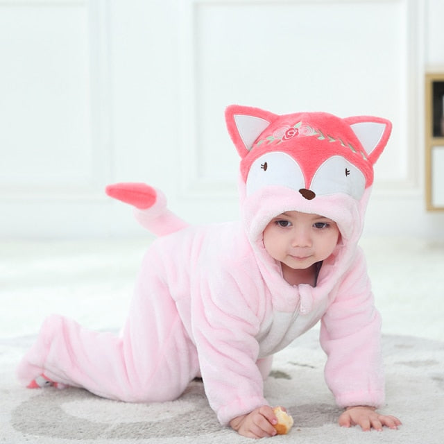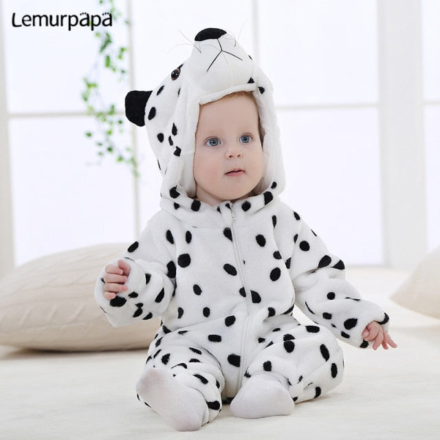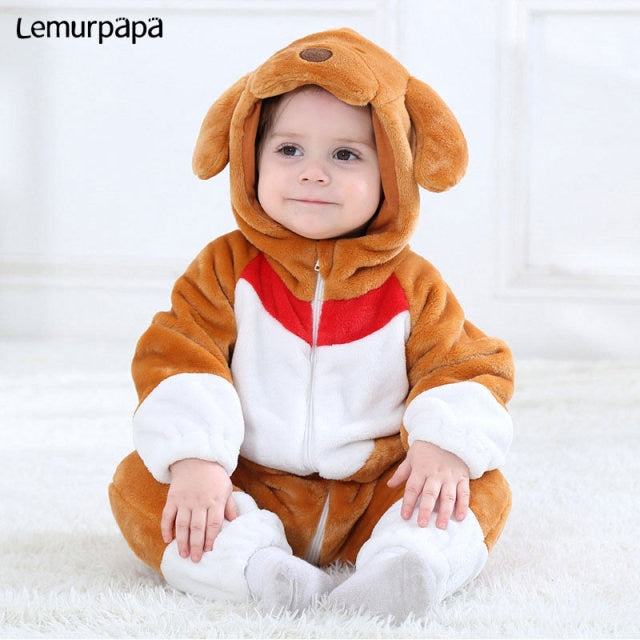 Roztomilý a teplý overal pro batolata ve zvířecích designech s kapucí a zapínáním na zip.