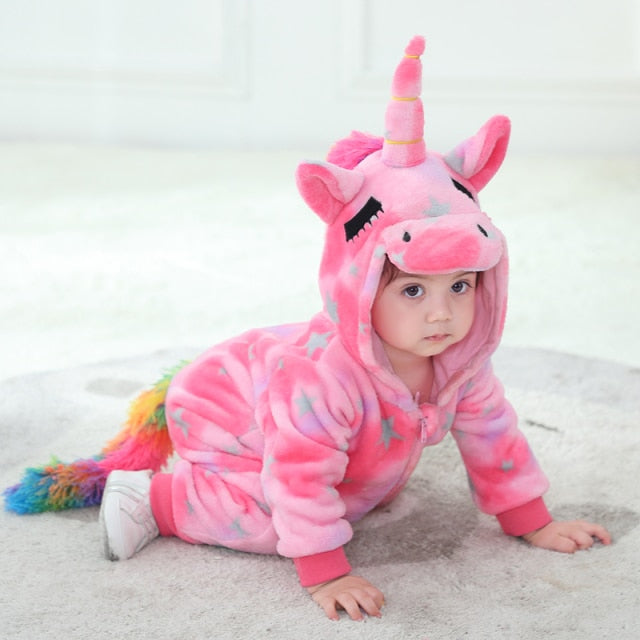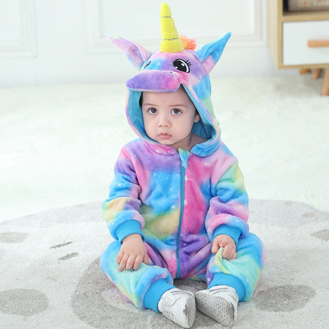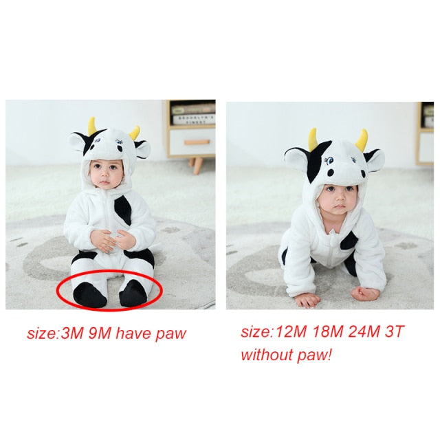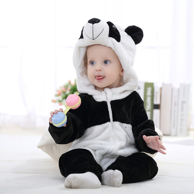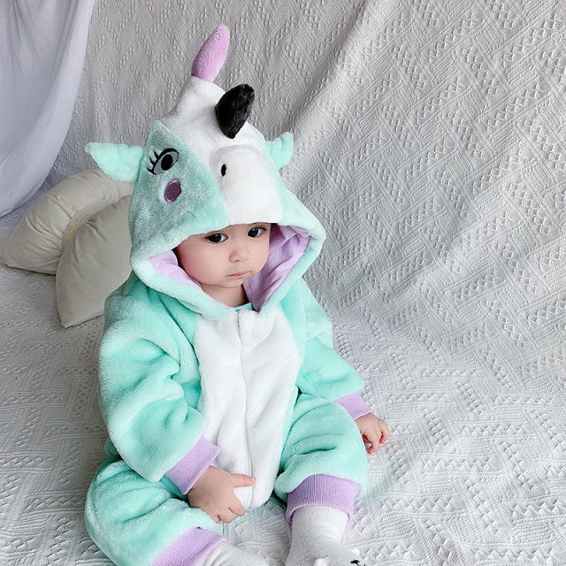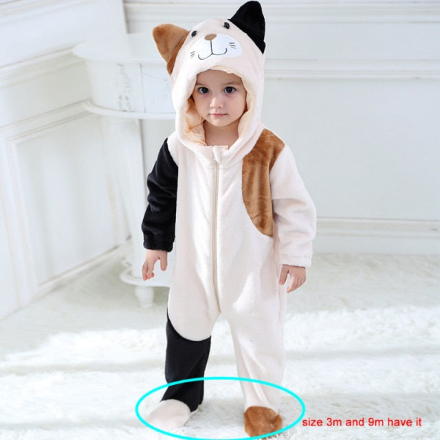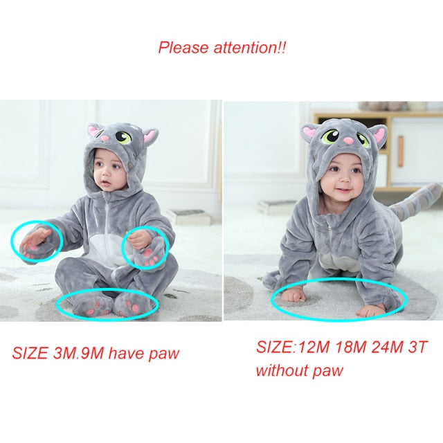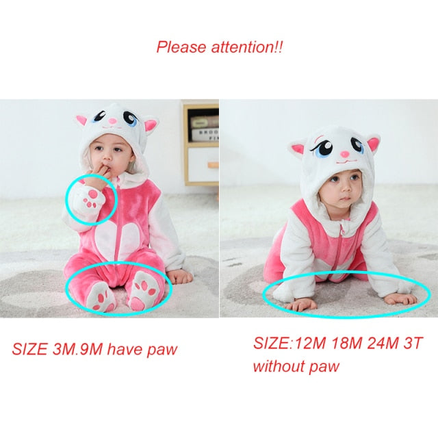 Roztomilý a teplý overal pro batolata ve zvířecích designech s kapucí a zapínáním na zip.